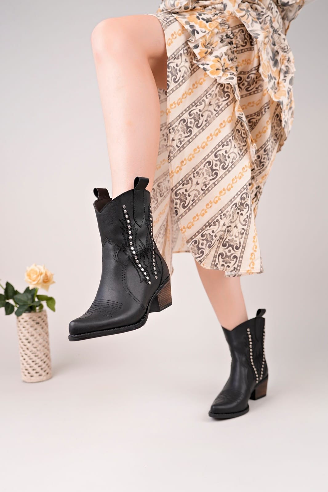 • Matin Siyah Cilt Topuklu Bot