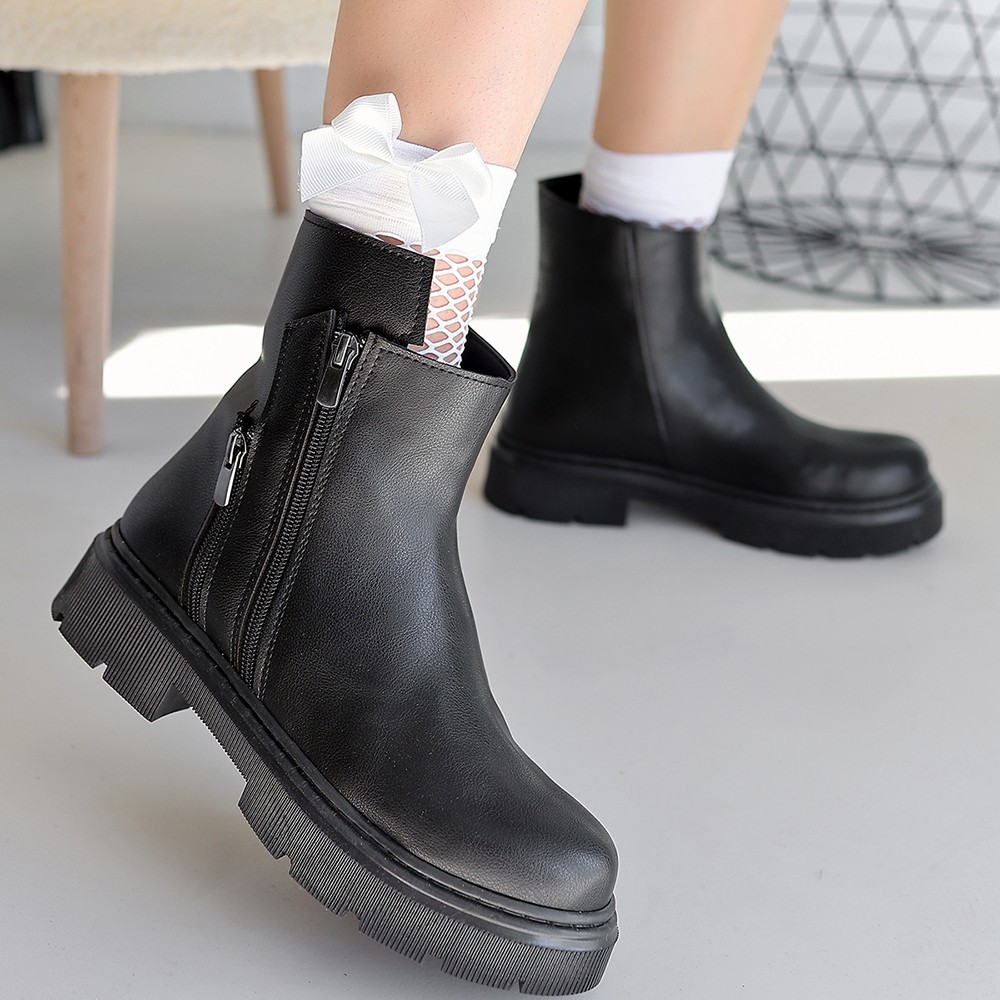 • Menta Siyah Cilt Fermuar Aksesuarlı Bot