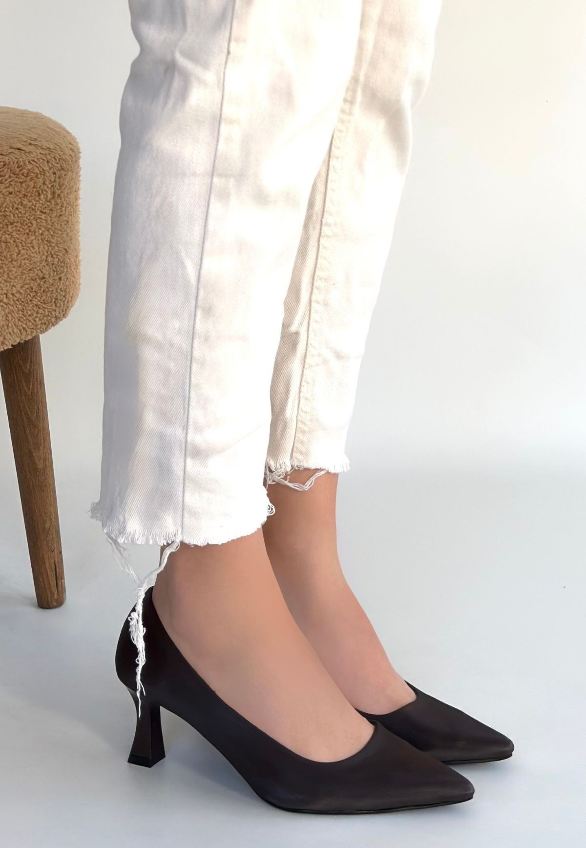 • Mırta Acı Kahve Cilt Topuklu Ayakkabı