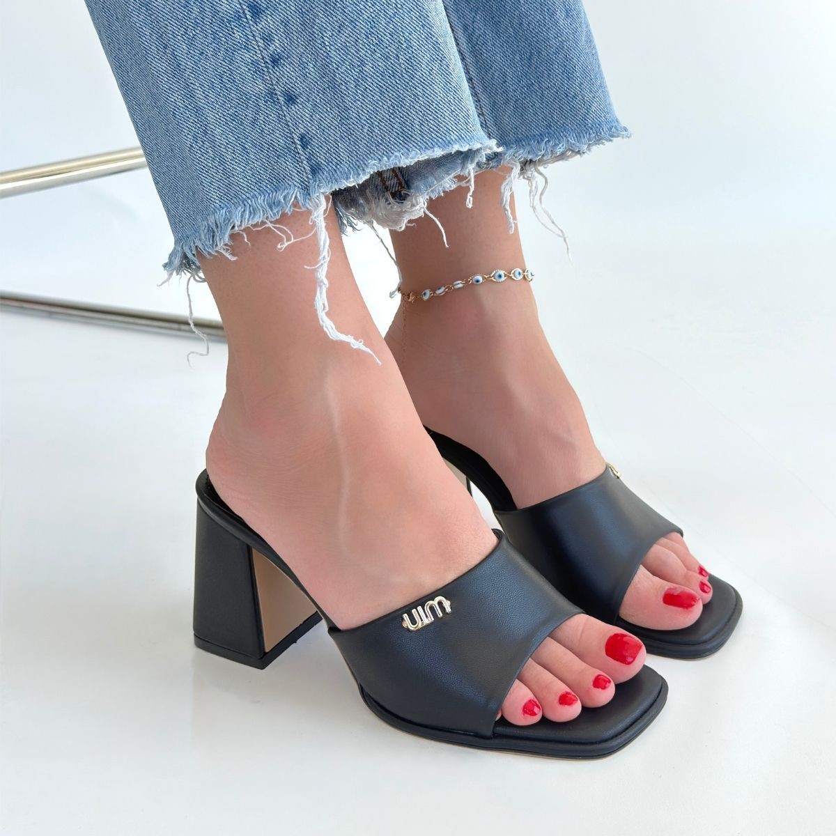 • Miyon Siyah Cilt Topuklu Terlik