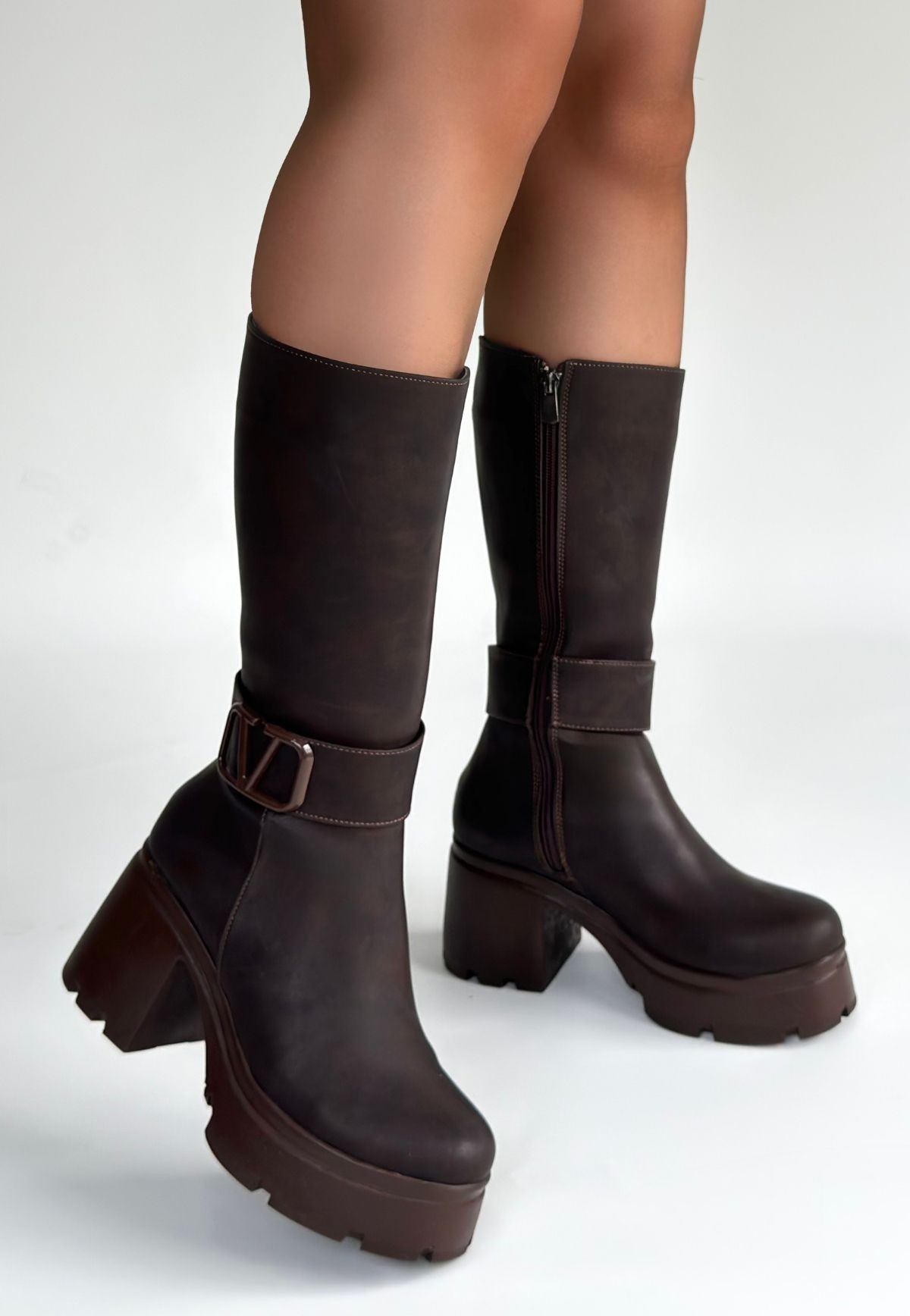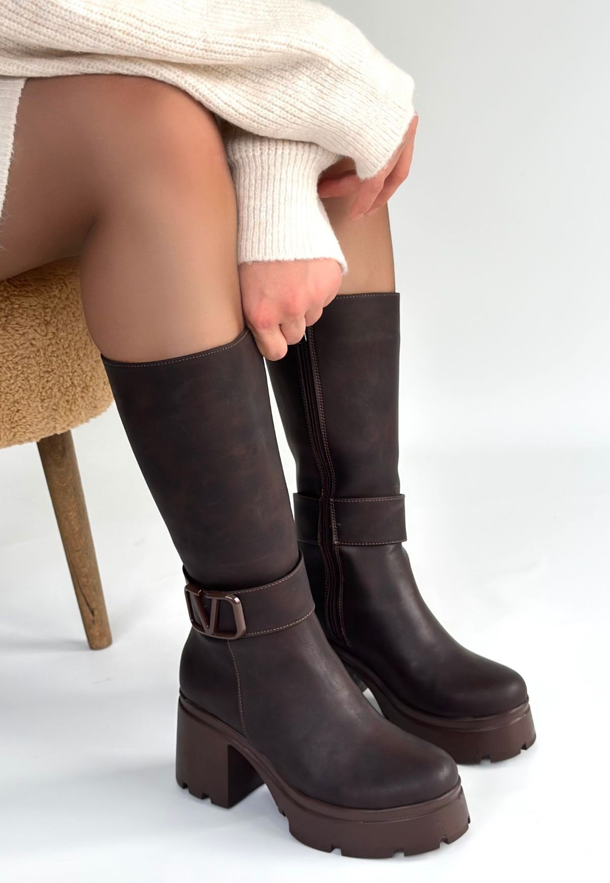 • Moki Kahverengi Nubuk Topuklu Çizme