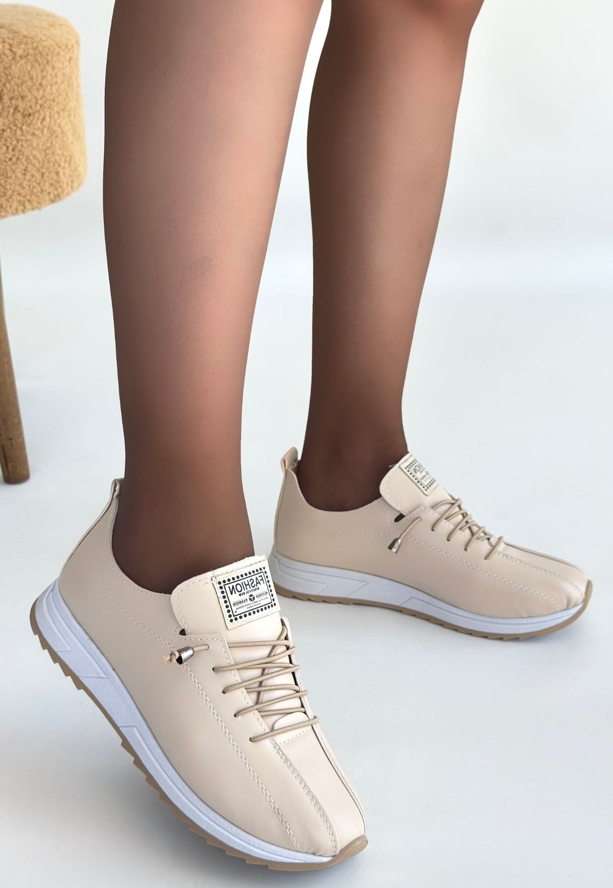 • Monya Bej Cilt Bağcıklı Spor Ayakkabı
