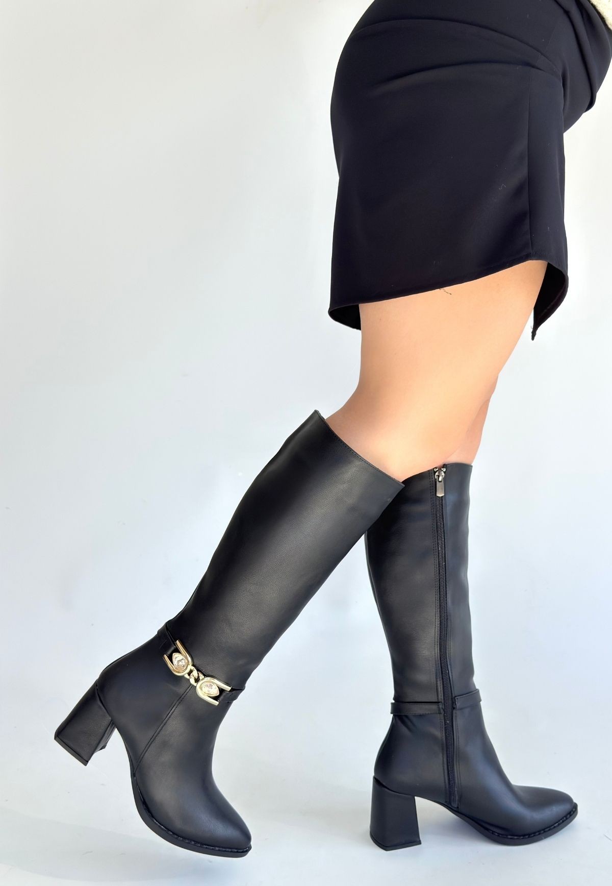 Mooni Siyah Cilt Topuklu Çizme