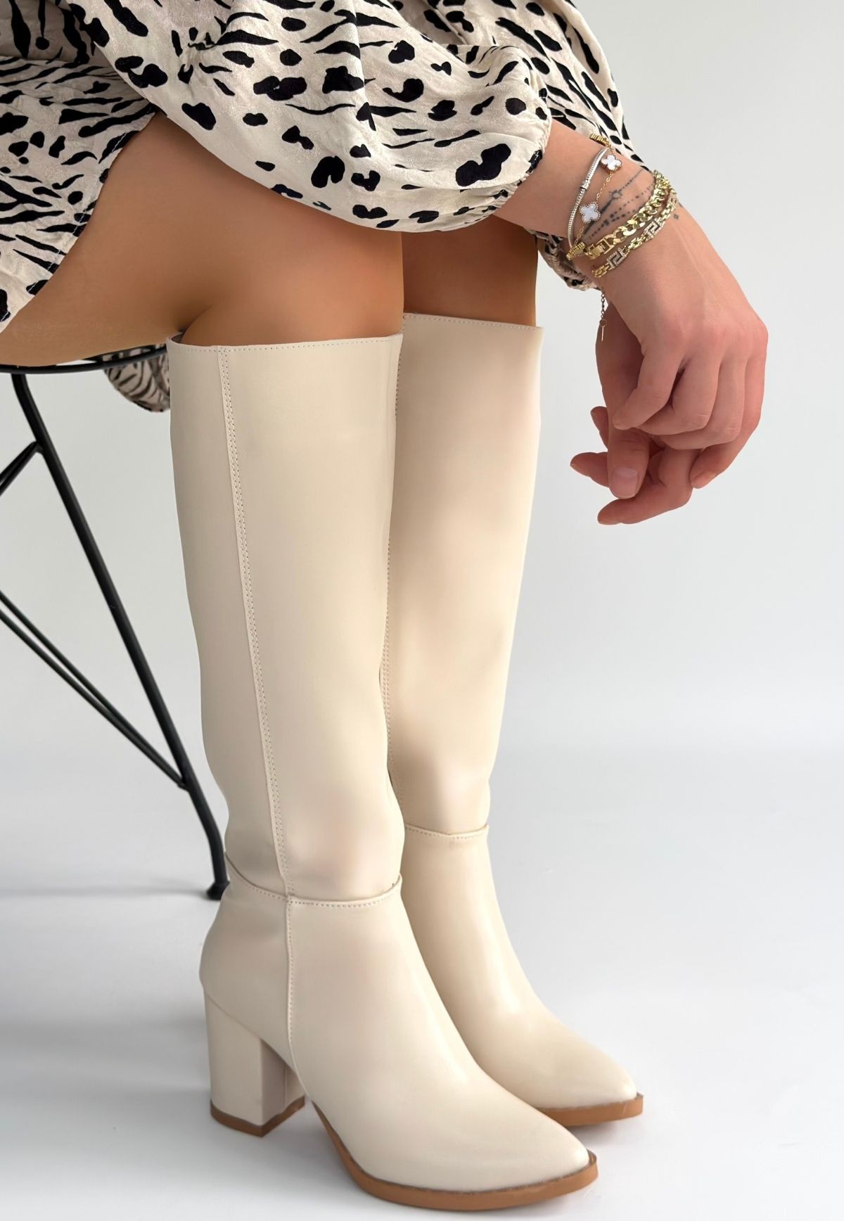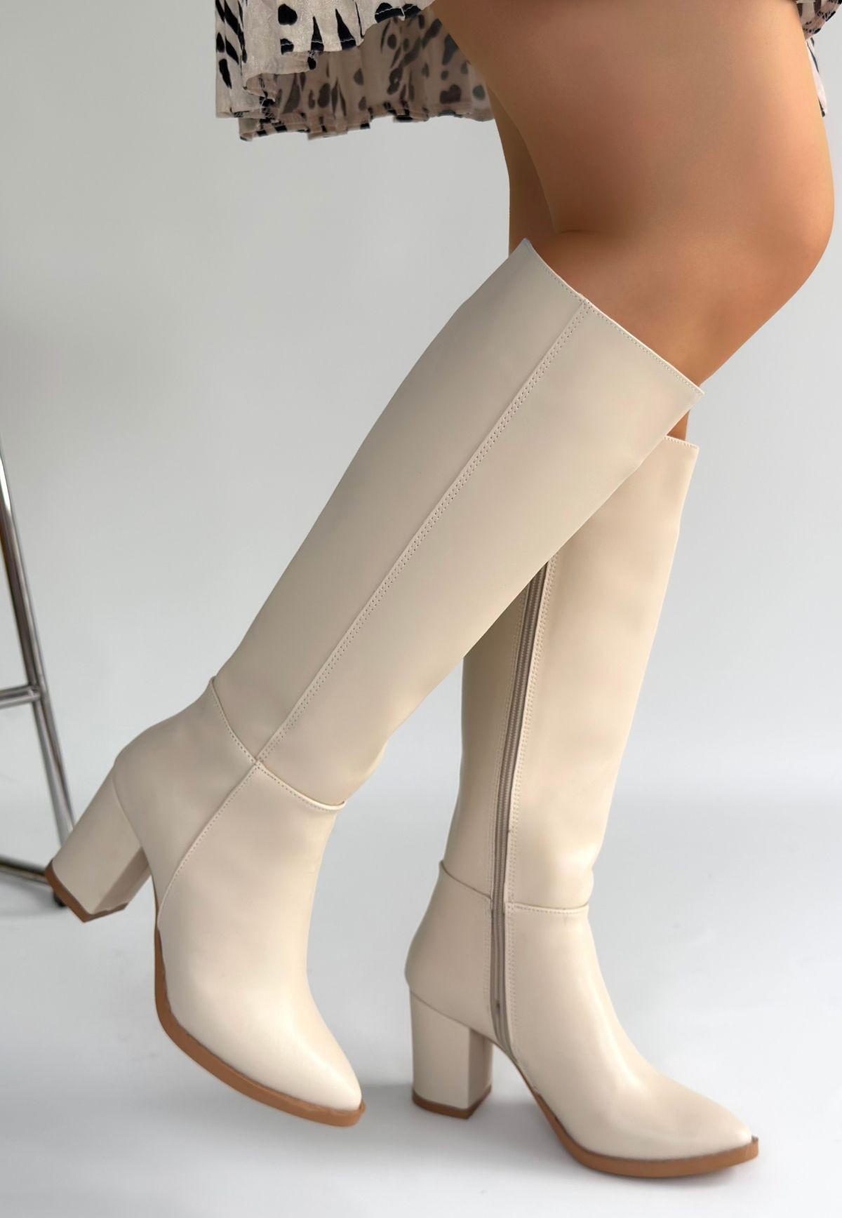 • Morena Bej Cilt Bej Tabanlı Topuklu Çizme