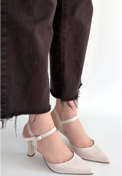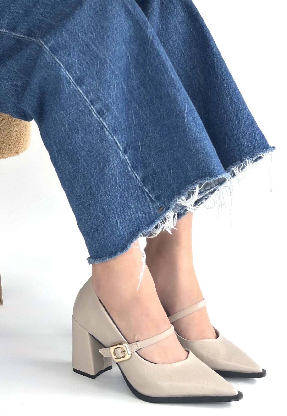 • Nıvra Bej Cilt Topuklu Ayakkabı