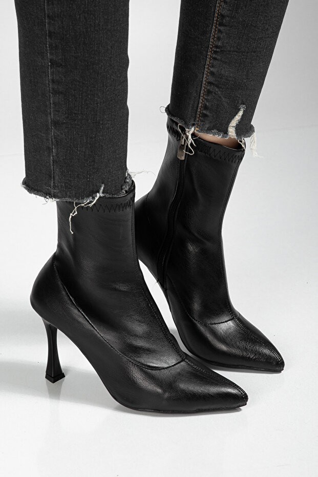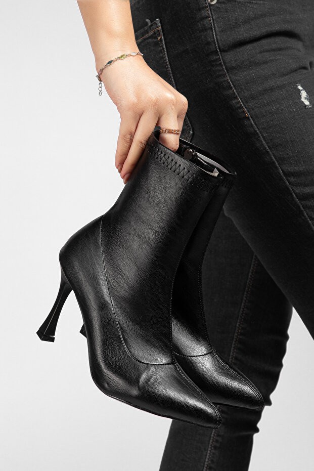 • Orjen Siyah Cilt Streç Topuklu Bot