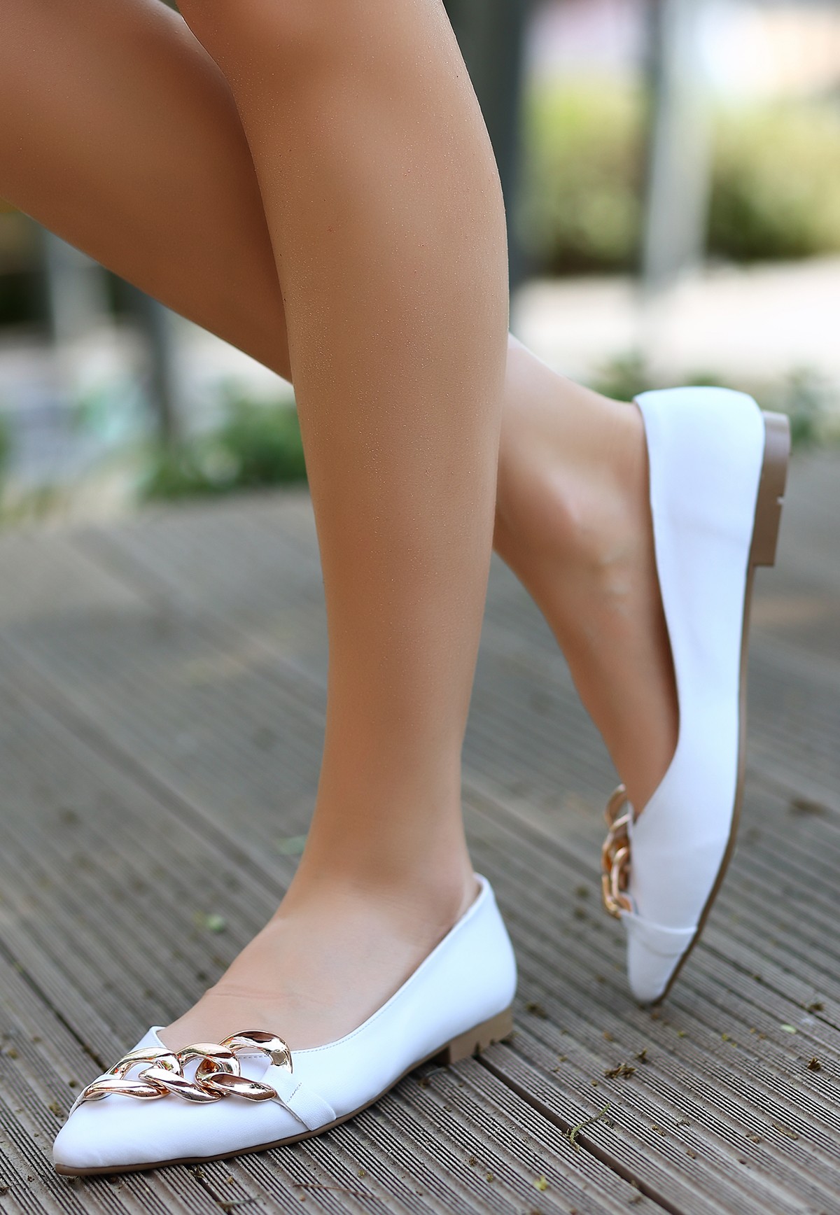 • Popi Beyaz Cilt Zincirli Babet Ayakkabı