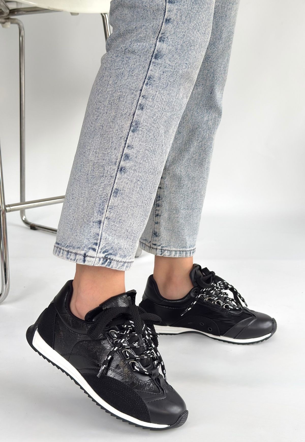 Ranu Siyah Cilt Paraşüt Detaylı Bağcıklı Spor Ayakkabı