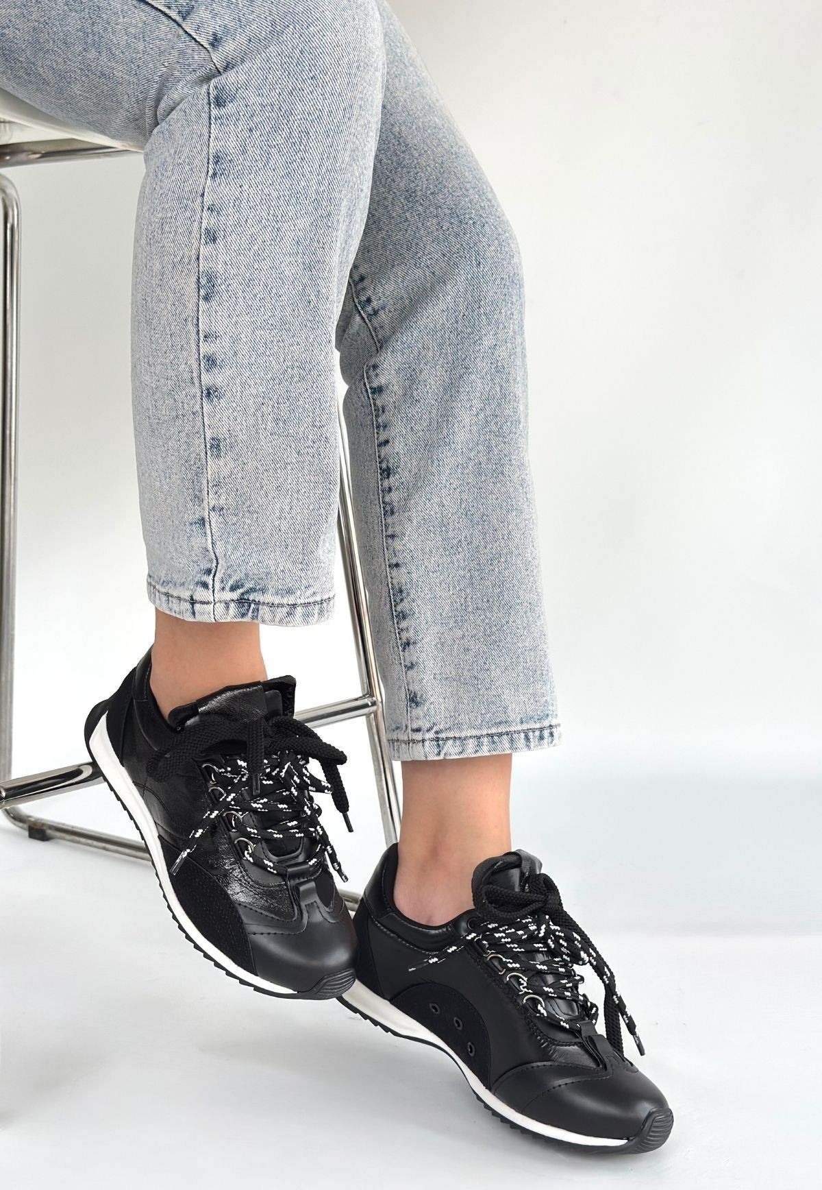 • Reat Siyah Cilt Bağcıklı  Paraşüt Detaylı Spor Ayakkabı