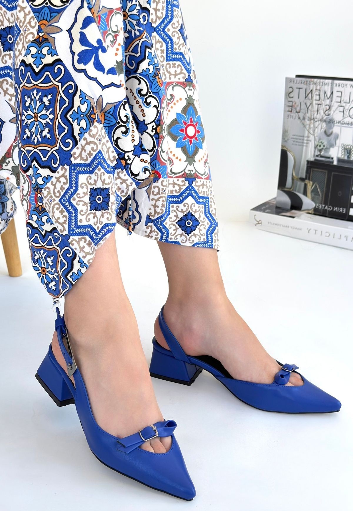 Rewat Mavi Cilt Topuklu Ayakkabı