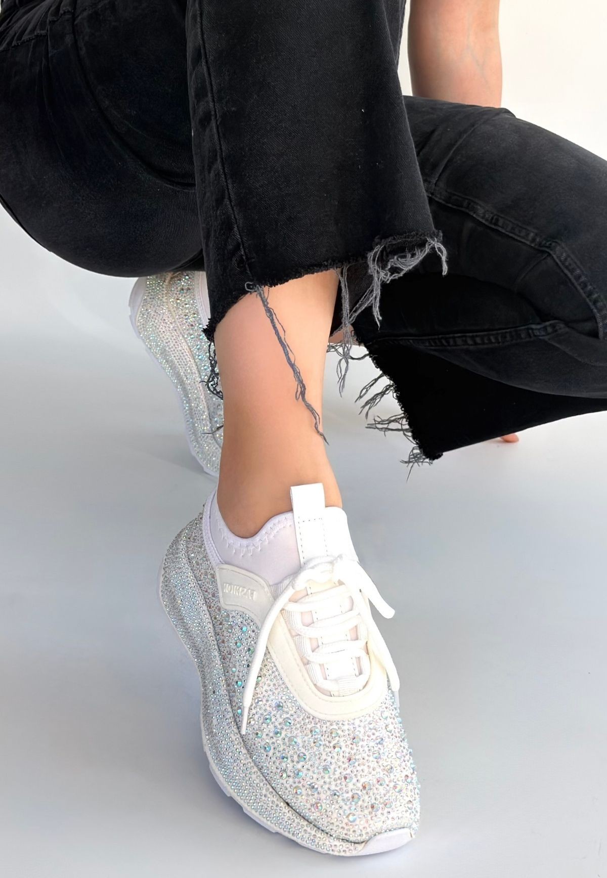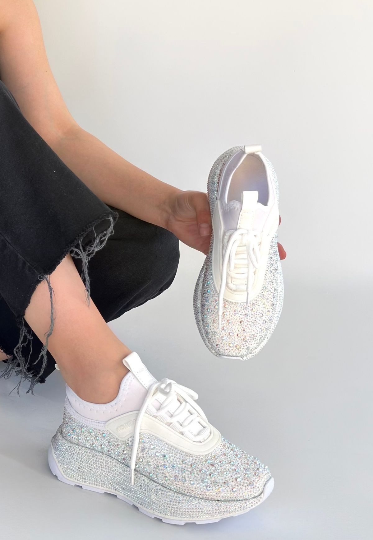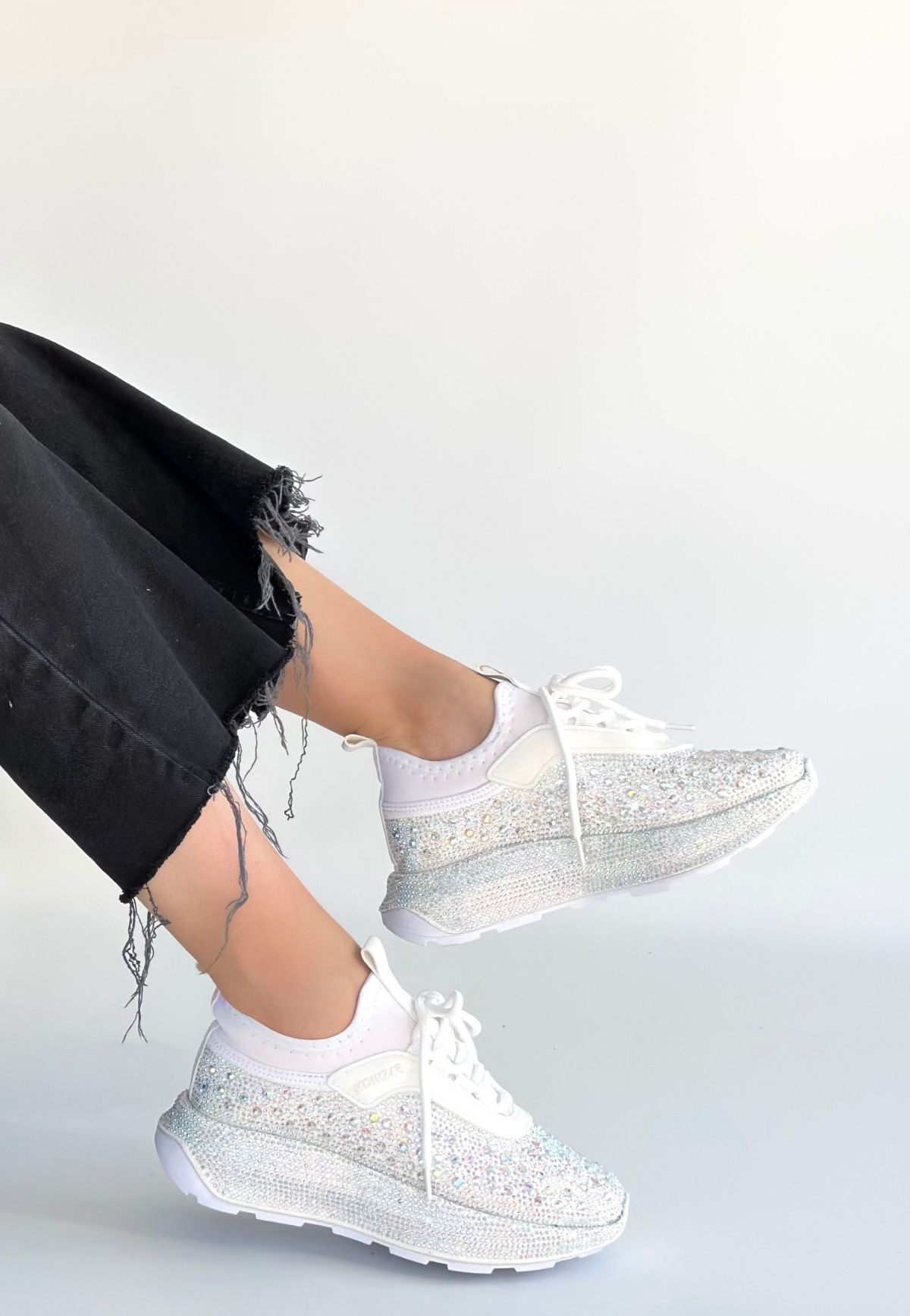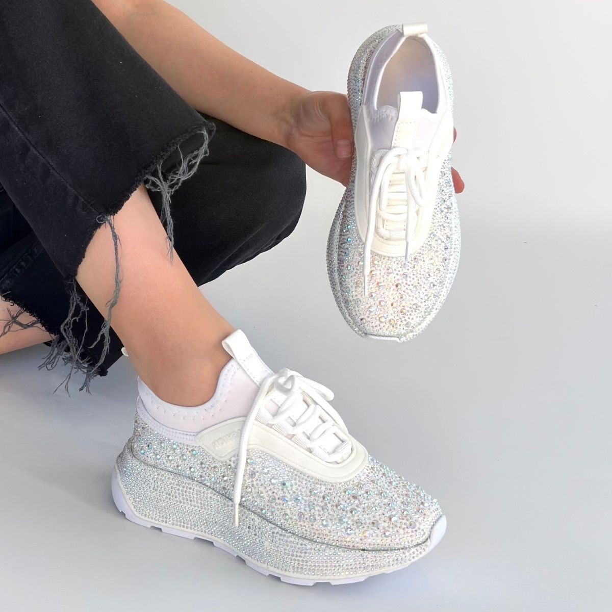 • Rimay Beyaz Cilt Boncuk İşlemeli Spor Ayakkabı
