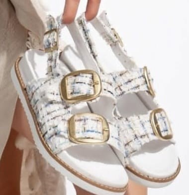 Sandalet Olira Beyaz Simli Kemerli Sandalet