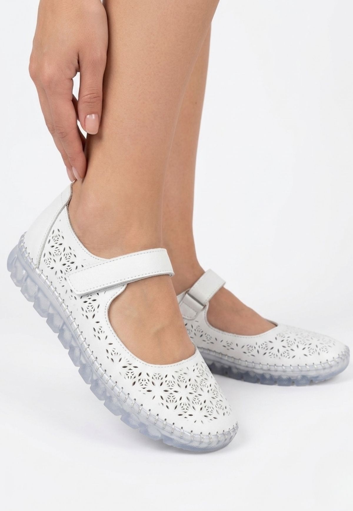 • Sina Beyaz Deri Cırt Cırtlı Babet Ayakkabı