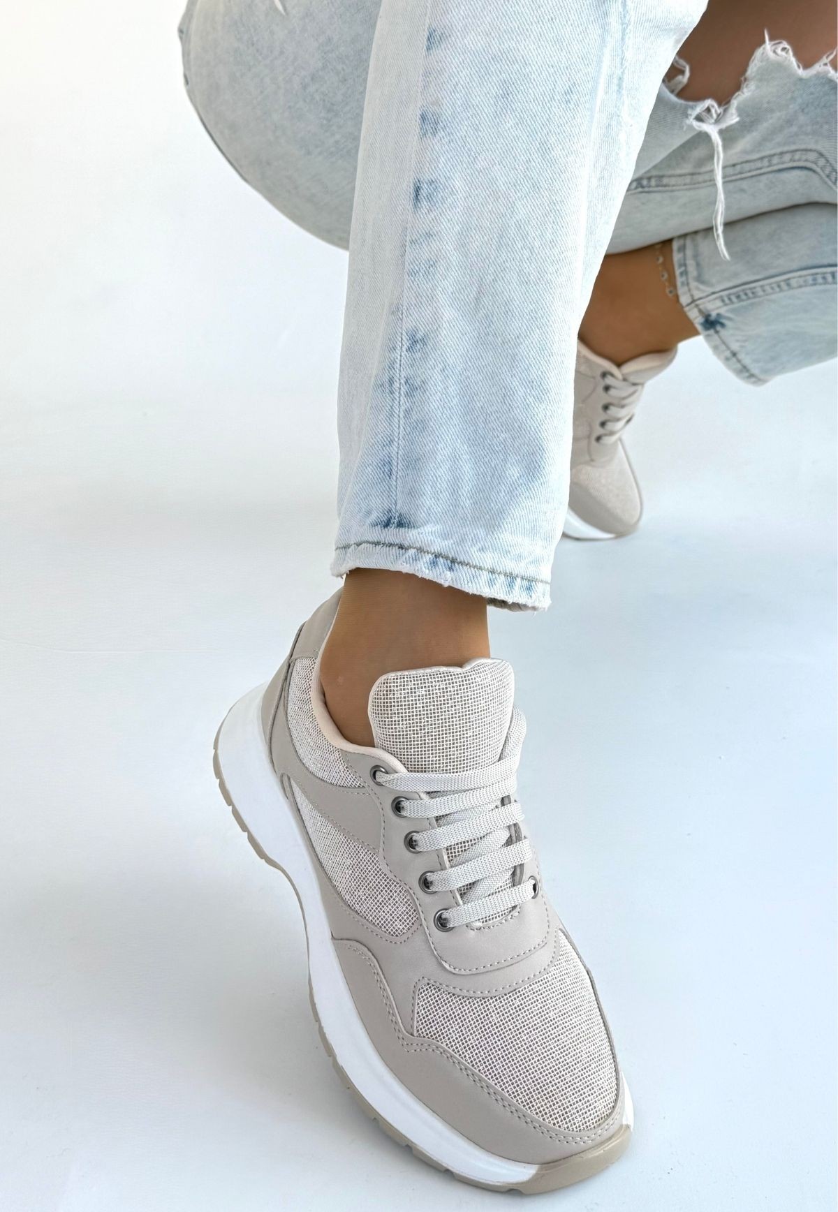 • Slar Bej Cilt Bağcıklı Spor Ayakkabı