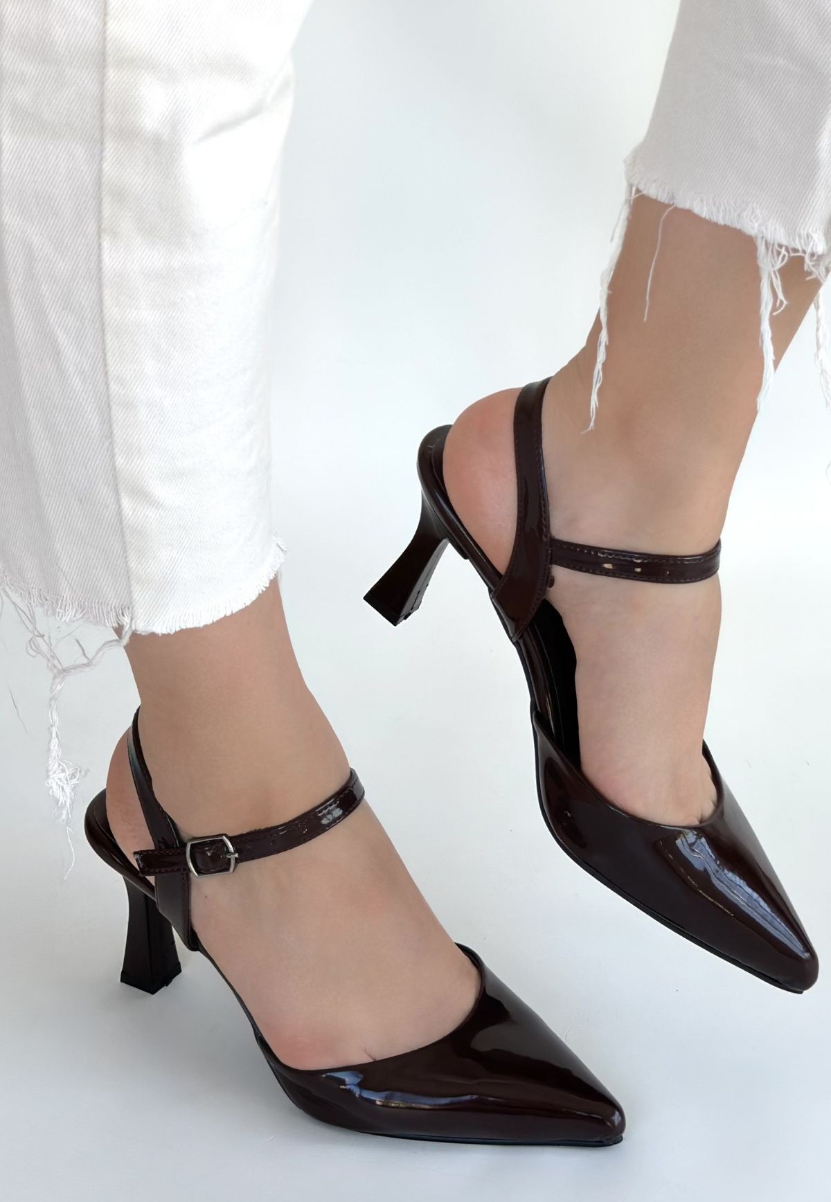 • Suden Kahverengi Rugan Topuklu Ayakkabı