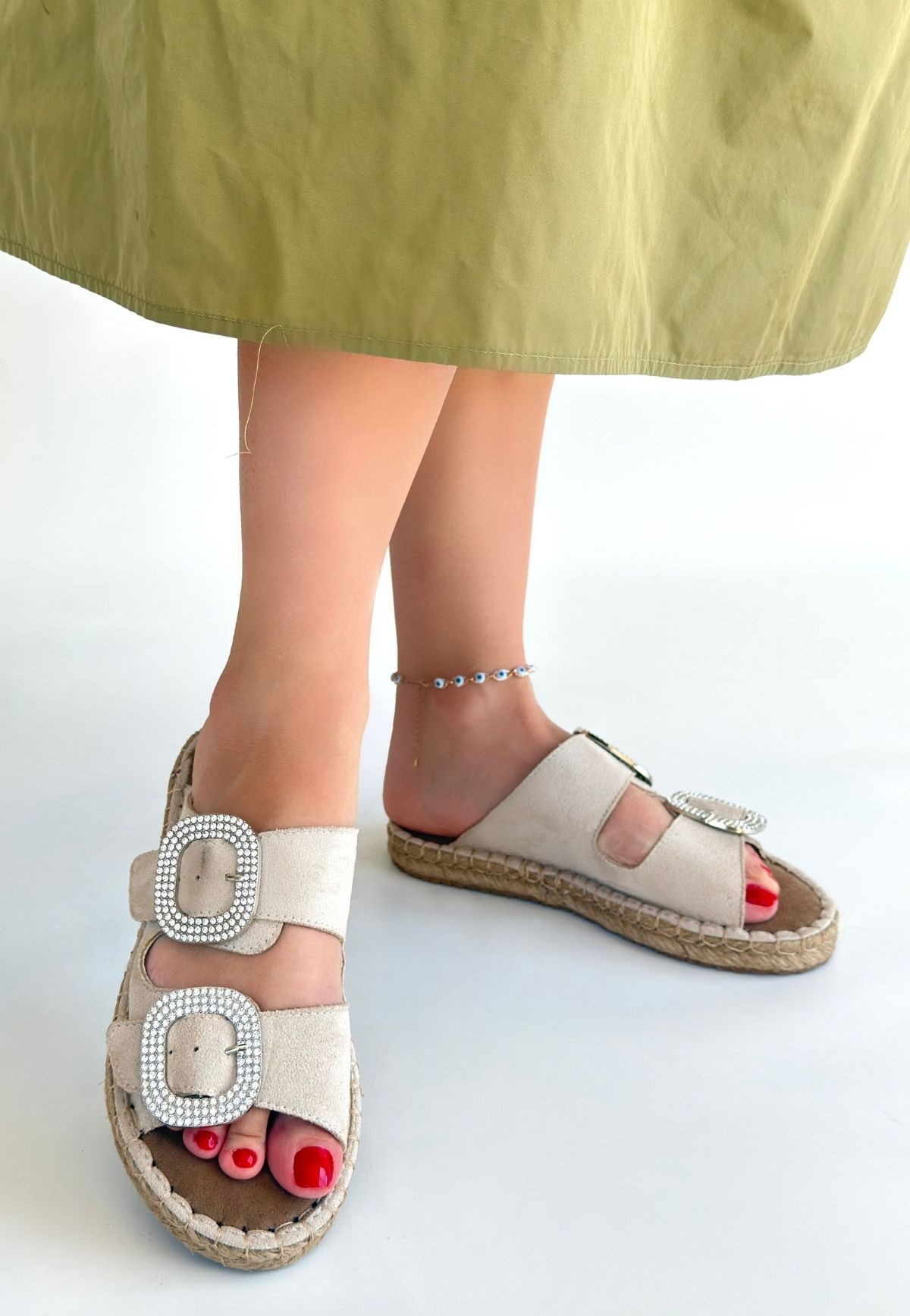 Terlik Hertas Bej Nubuk Tokalı Terlik