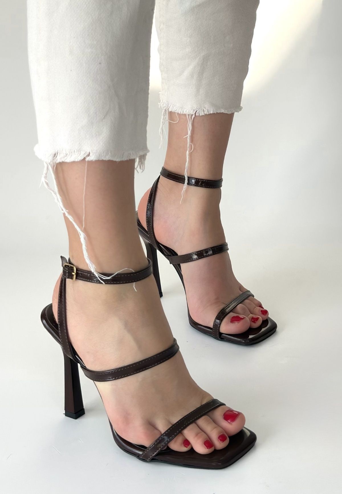 Umira Kahverengi Rugan Topuklu Bilekten Kemerli Ayakkabı