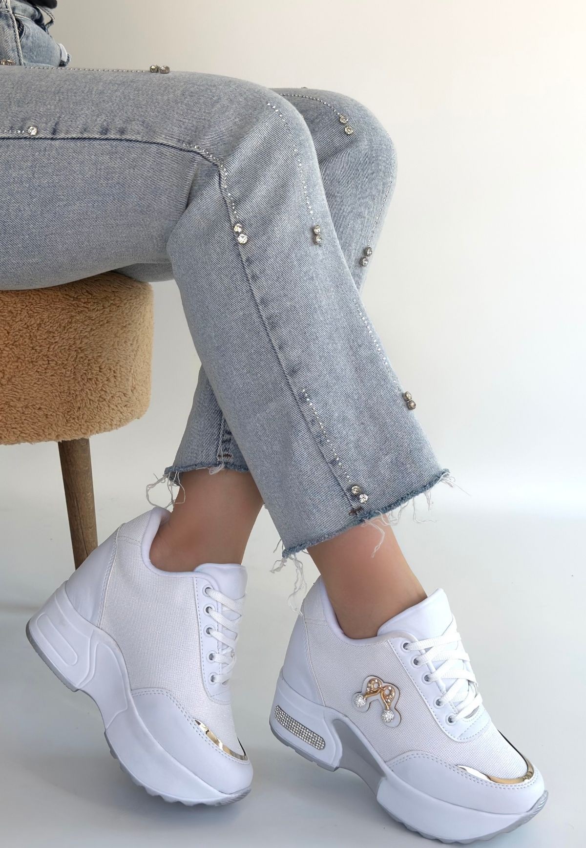 Wody Beyaz Cilt Simli Bağcıklı Spor Ayakkabı