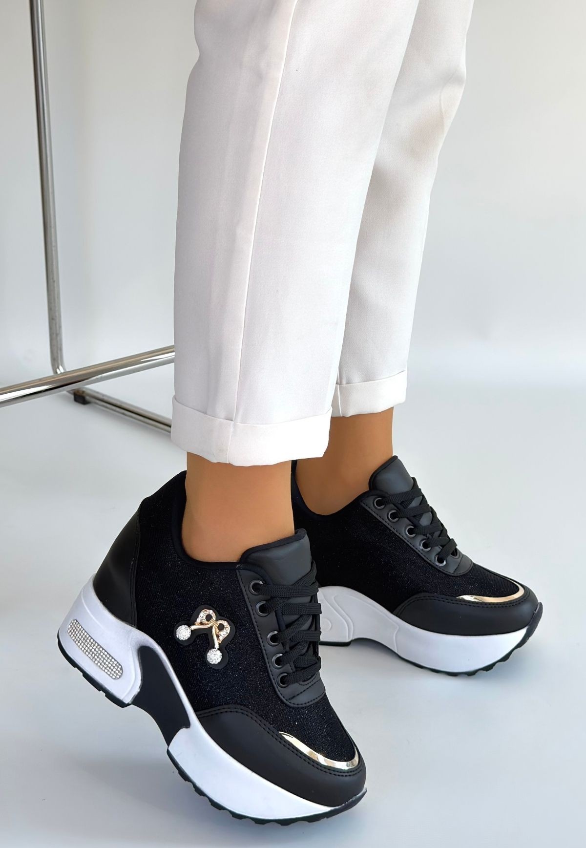 Wody Siyah Cilt Simli Bağcıklı Spor Ayakkabı