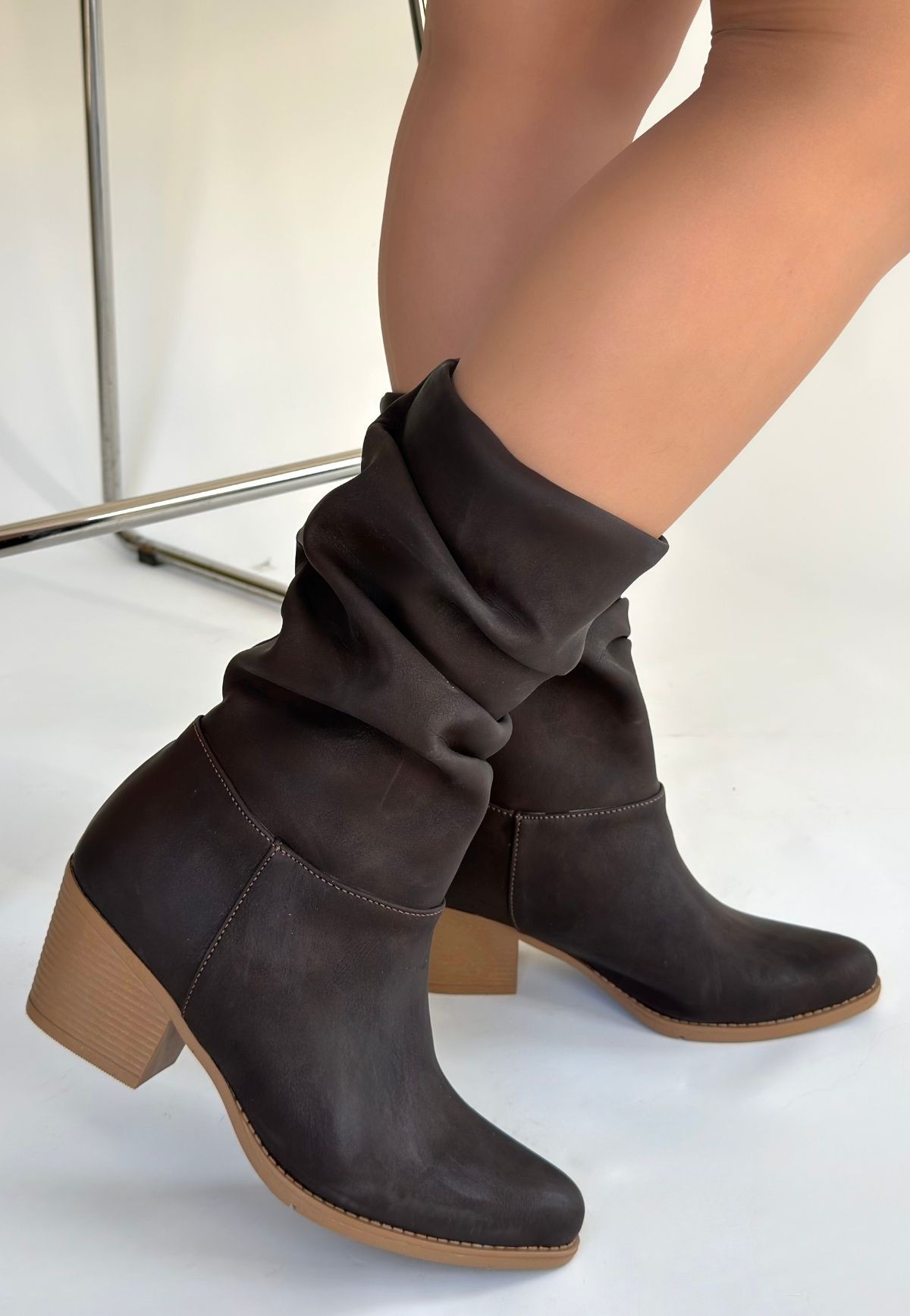 • Yior Acı Kahve Nubuk Topuklu Bot