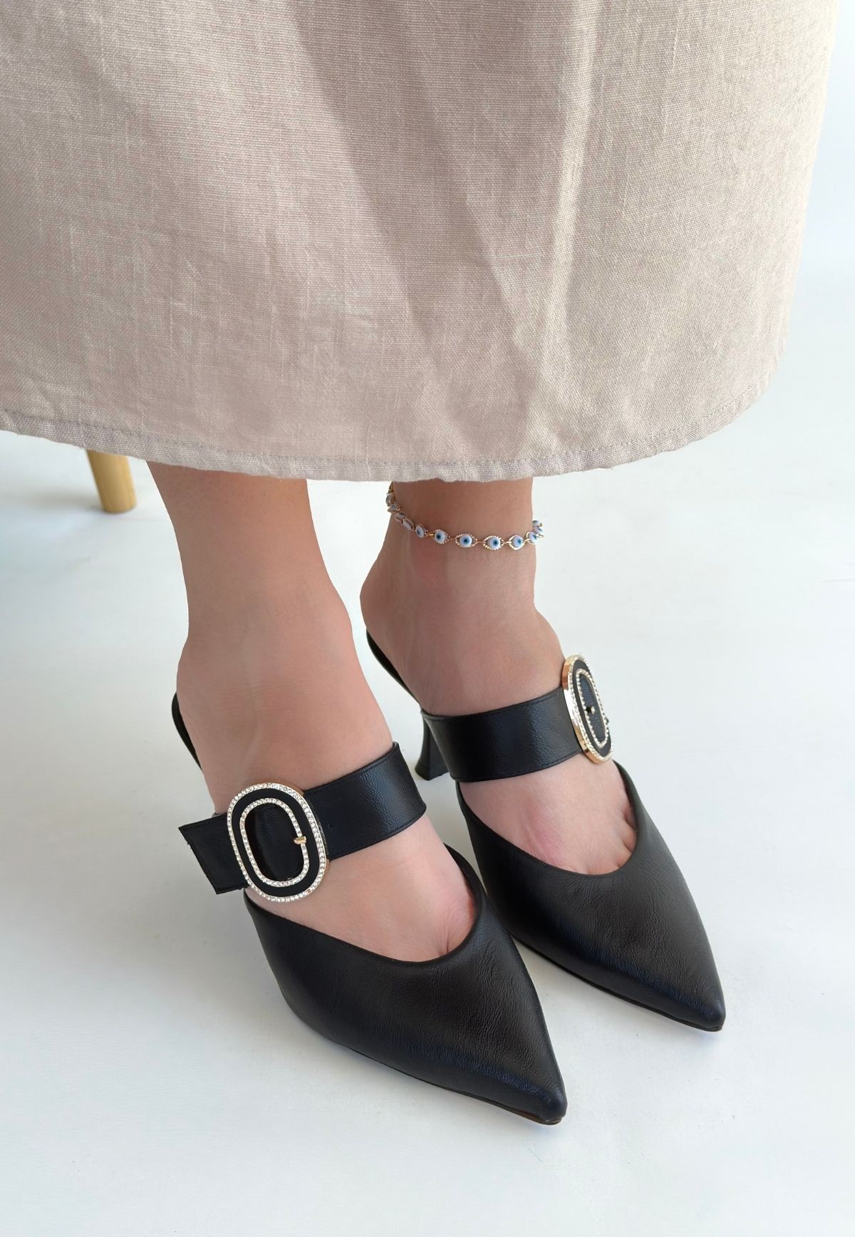 • Yote Siyah Cilt Topuklu Terlik