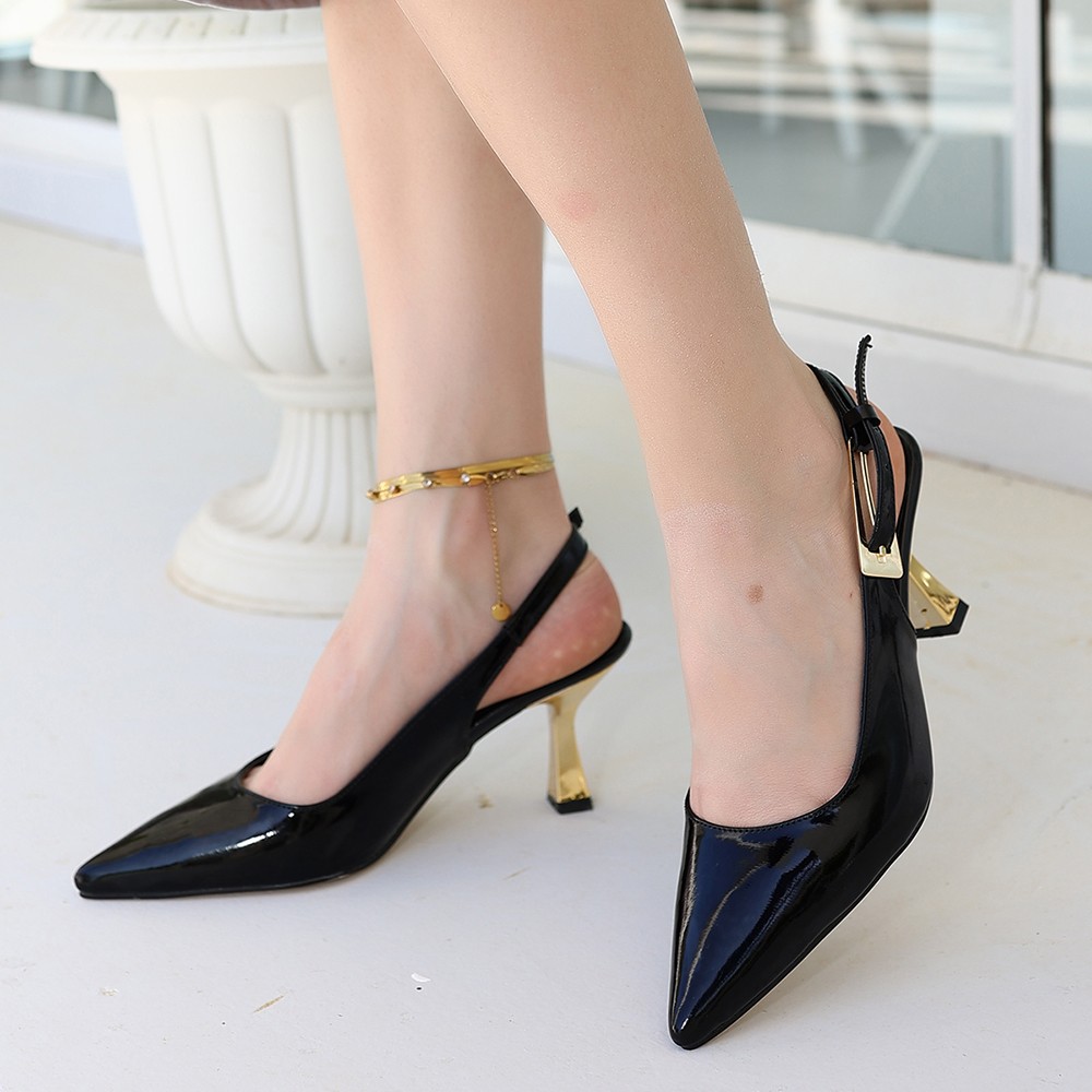 Zalin Siyah Rugan Topuklu Ayakkabı